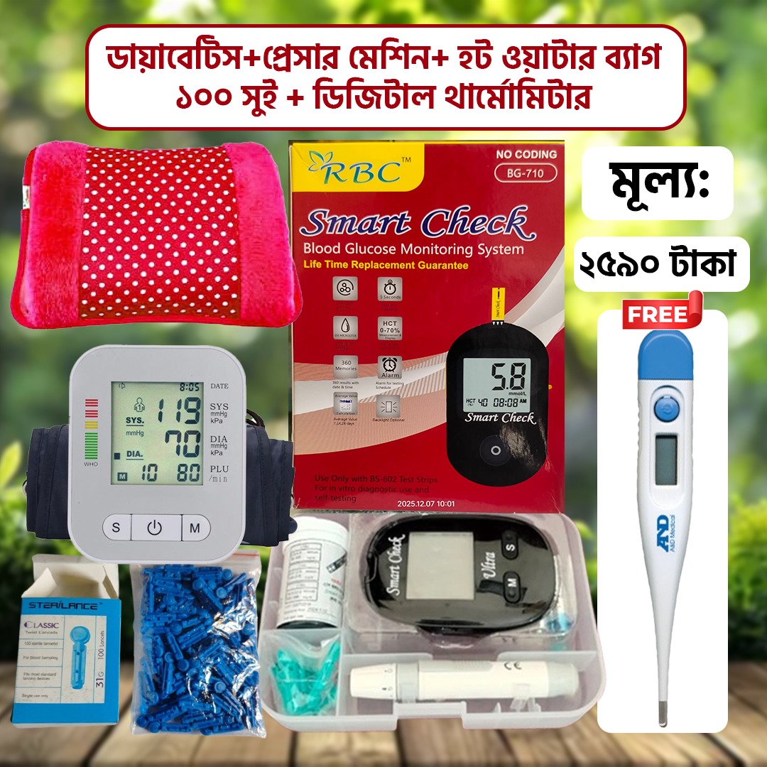 ১০টি স্ট্রিপসহ স্মার্ট চেক মেশিন + ৫০ টি স্ট্রিপের আলাদা কৌটা