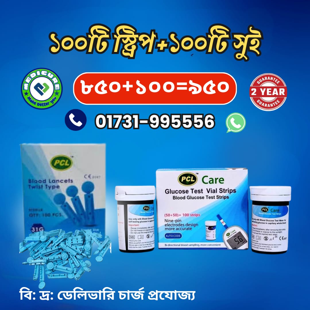 ১০০ টি স্ট্রিপ এবং ১০০ টি সুই